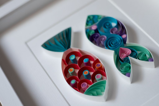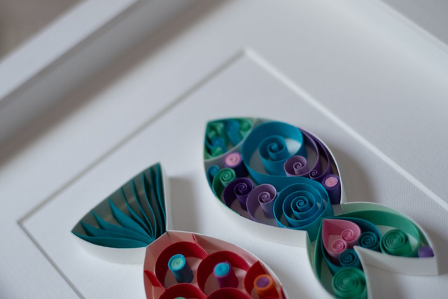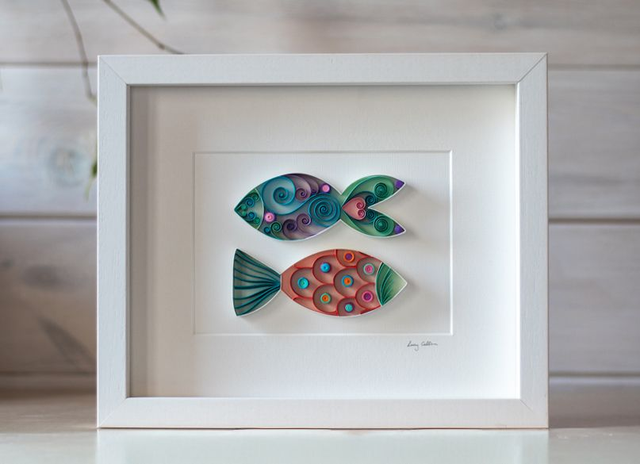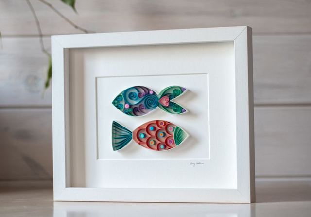 Glistening beneath the waves, these vibrant quilled fish shimmer with graceful curves and gently spiralled scales of paper. The wonders of the underwater world come alive in joyful colours and the magic of the sea's embrace.