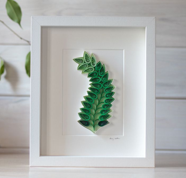 Lush and living in paper form, the “Green Fern” unfurls it's tender stem coiled with care. Each strip of paper has been curled in quiet patience to become a leaf. A piece that brings the serenity of woodland green right into your home.